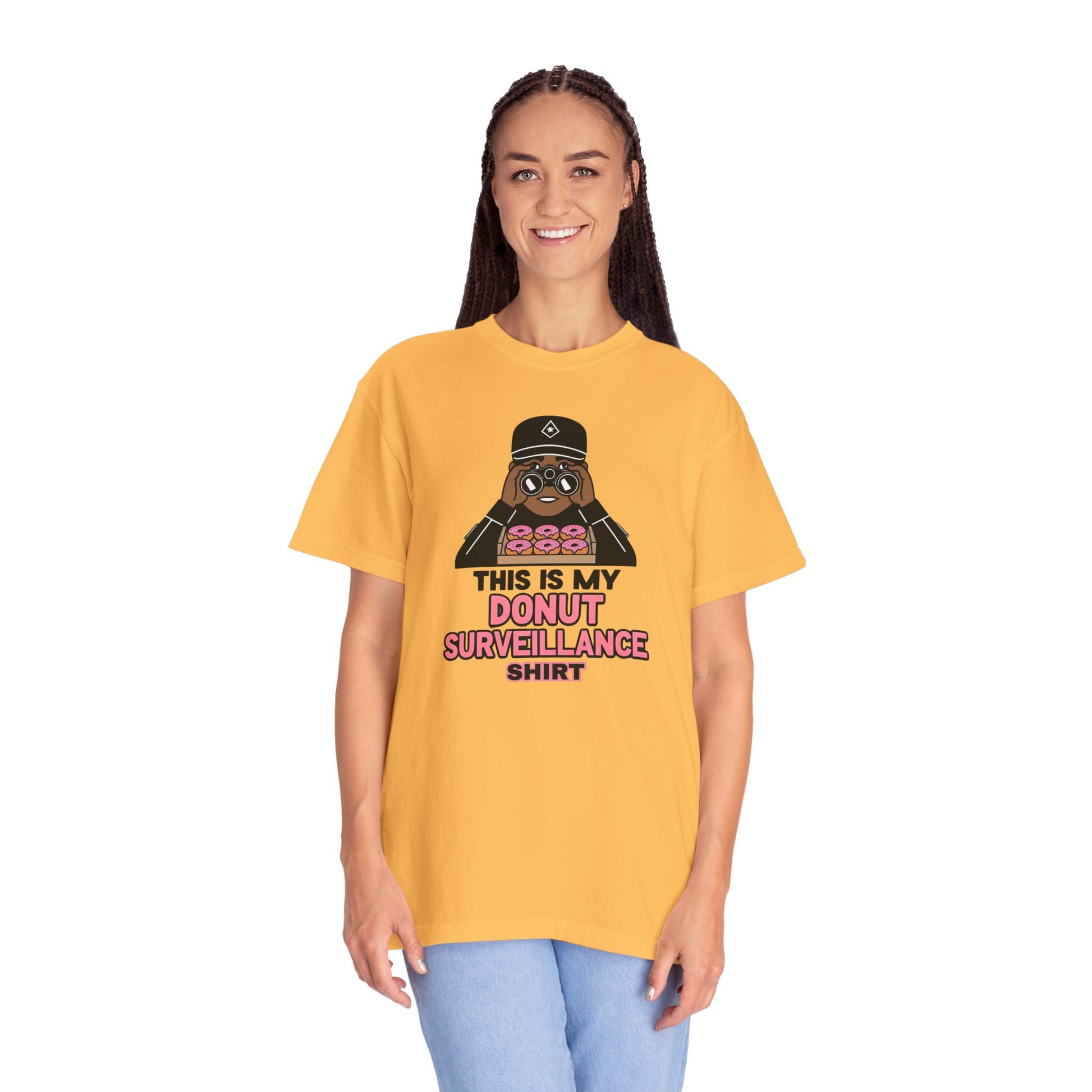 The bold, tactical font reads: “Donut Surveillance Unit”, pairing perfectly with dark tones like charcoal or navy. Whether you’re running radar or running on sugar, this shirt’s got your six.