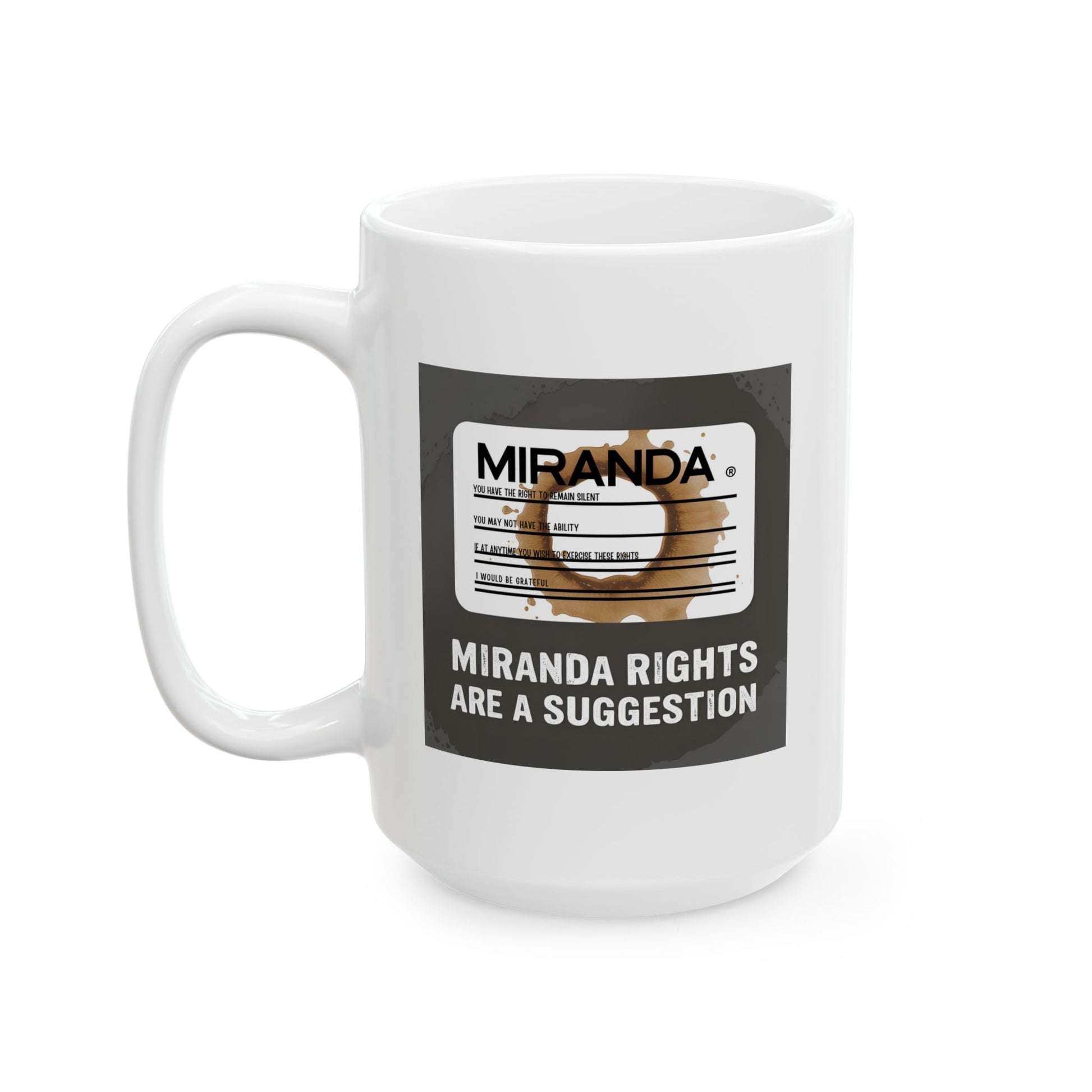 Sip your sarcasm with this bold ceramic mug featuring a sharp twist on the classic Miranda warning. Whether you're running on caffeine and case files or just need something to fend off morning small talk, this mug delivers a dose of law enforcement humor with every sip.